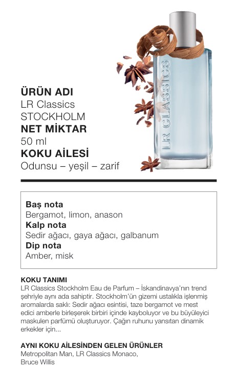 LR Stockholm, LR'nin en popüler erkek parfümlerinden biridir ve Creed Aventus ile büyük benzerlik gösterir.